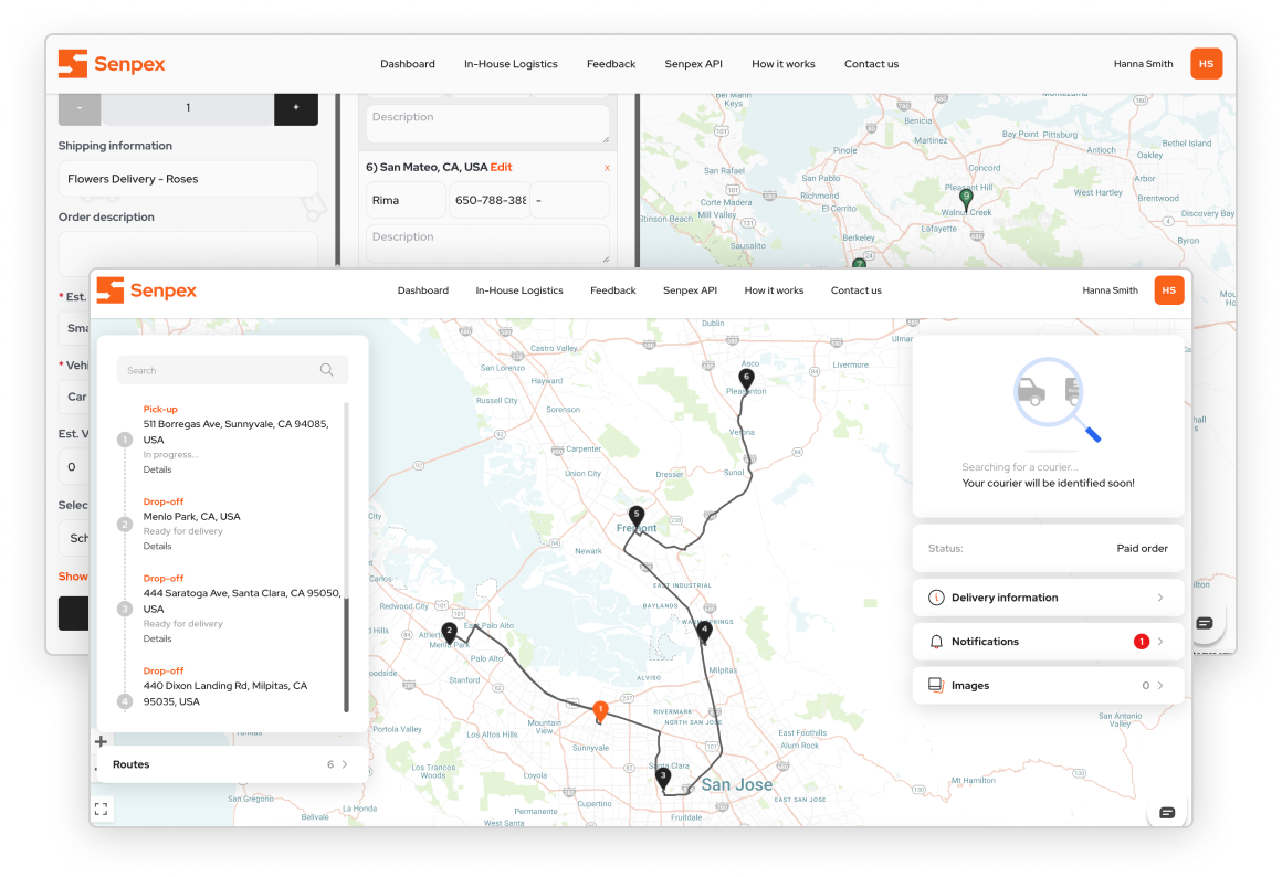 Senpex’s smart multi-stop route planner helps businesses from all industries and sizes to save time and money on last-mile logistics. Our advanced algorithms and reliable delivery team allow you to plan same-day deliveries and pick-ups in a matter of seconds, giving you more time to focus on growing your business.